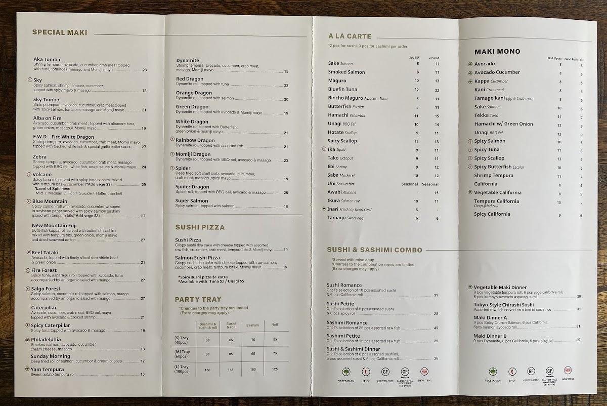 Roll (6pcs) 10 / Hand Roll (1pc) 6