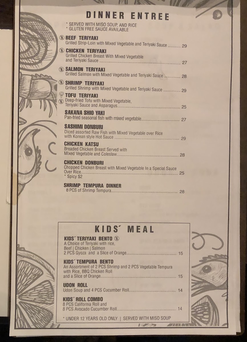 Dinner Entree (Served with Miso Soup & Rice, Gluten Free Sauce Available)