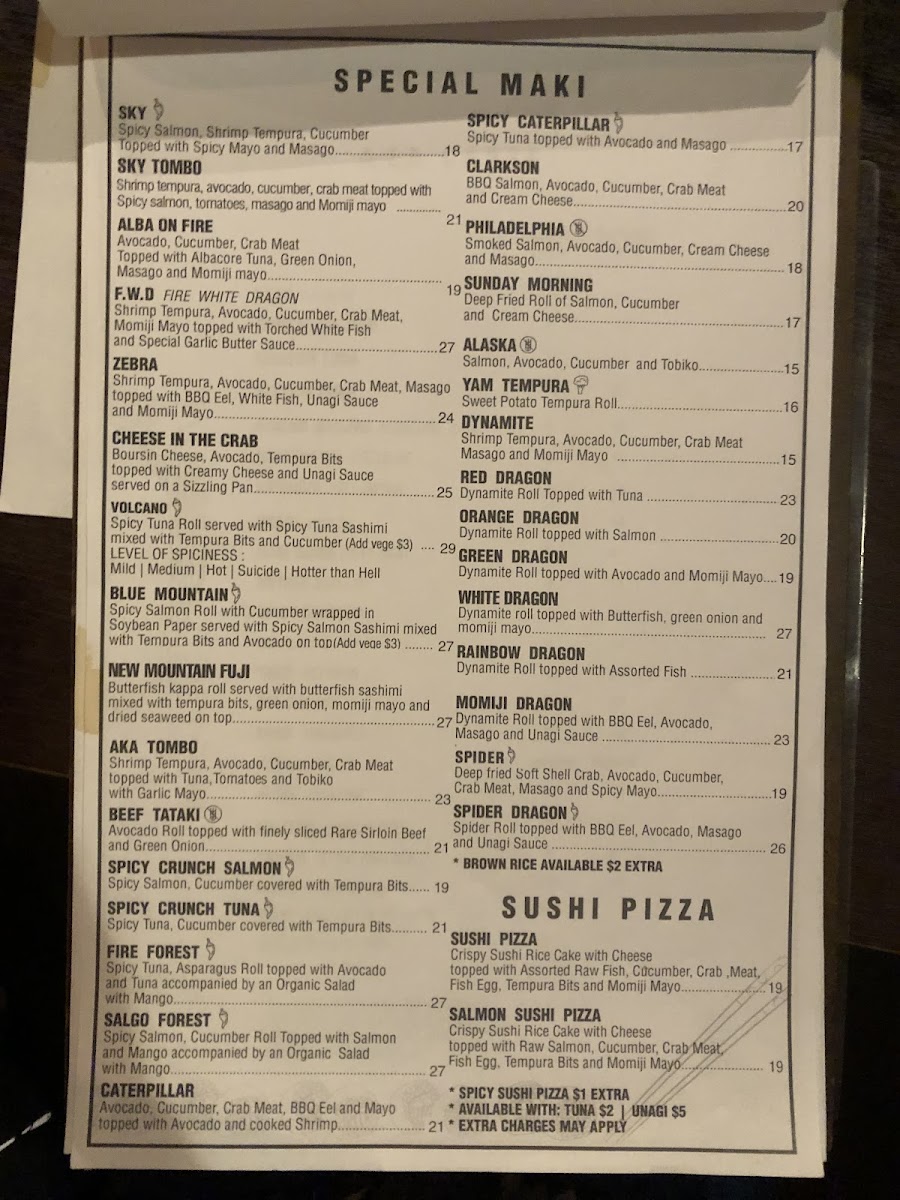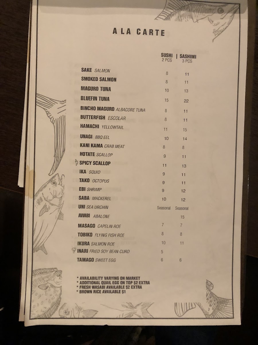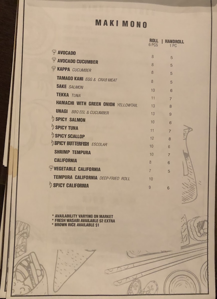 Roll (6pcs) 13 / Hand Roll (1pc) 9