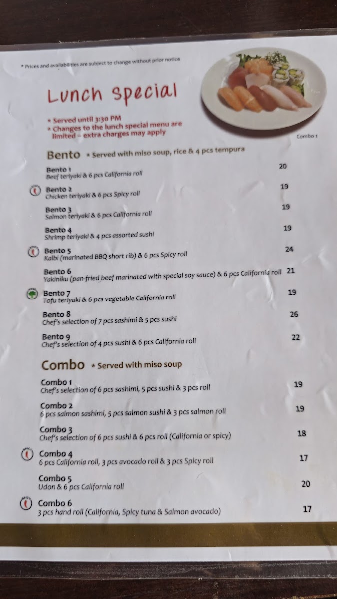 Roll (6pcs) 8 / Hand Roll (1pc) 6